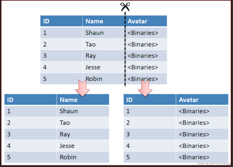 - 데이터를 특정 속성 중심으로 물리적 분할